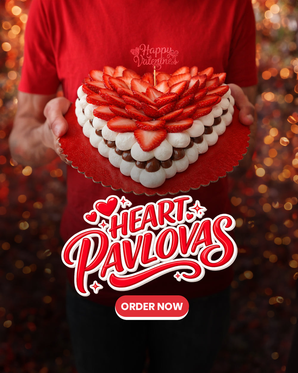 Limited-edition Valentine’s Day pavlovas, cookie cups, cakes & desserts made fresh in Miami. Pre-order for pickup or local delivery.