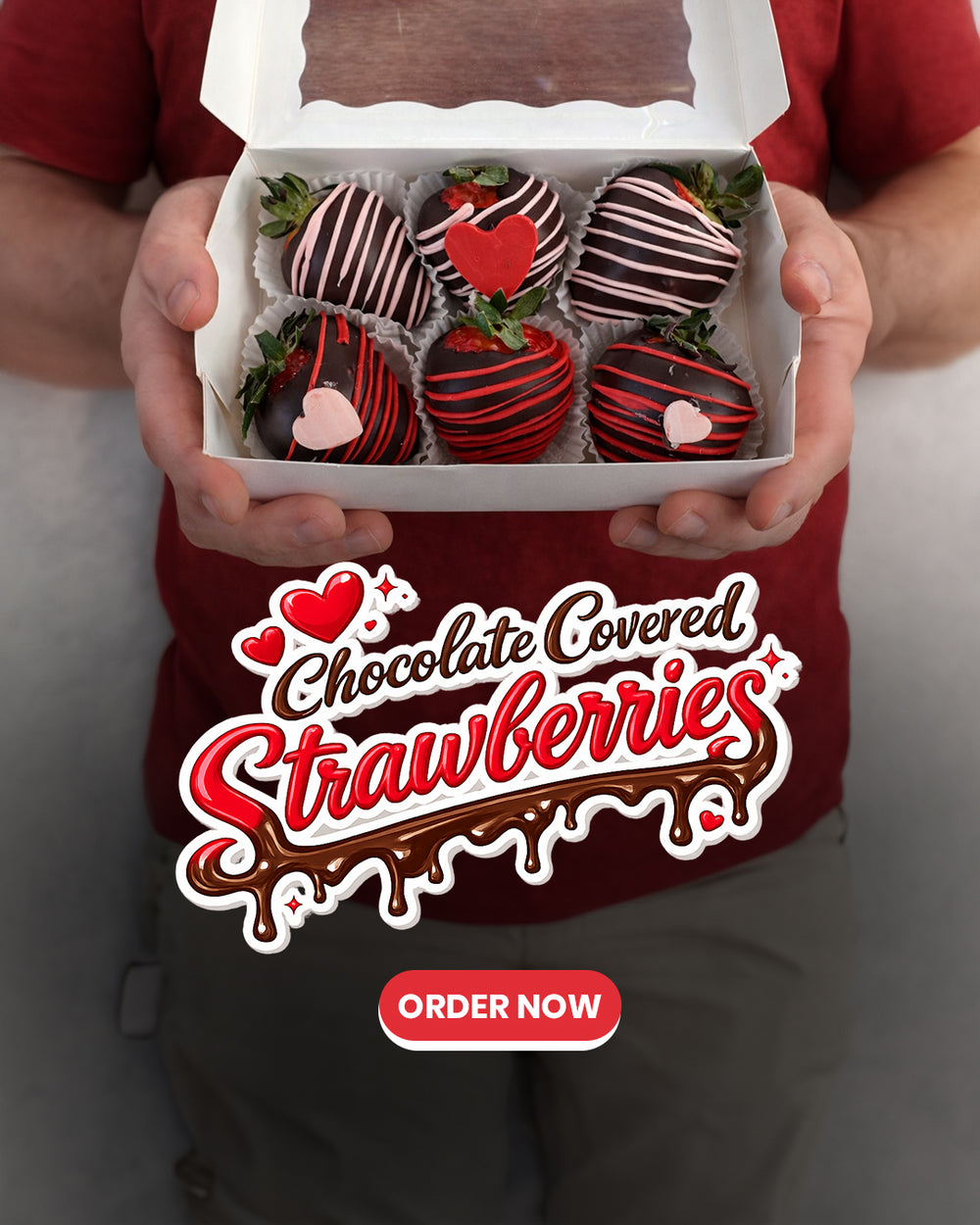 A timeless Valentine’s classic—elevated. Our Chocolate-Covered Strawberries are made with fresh, hand-selected strawberries dipped in rich, premium chocolate and finished with elegant Valentine’s decorations.