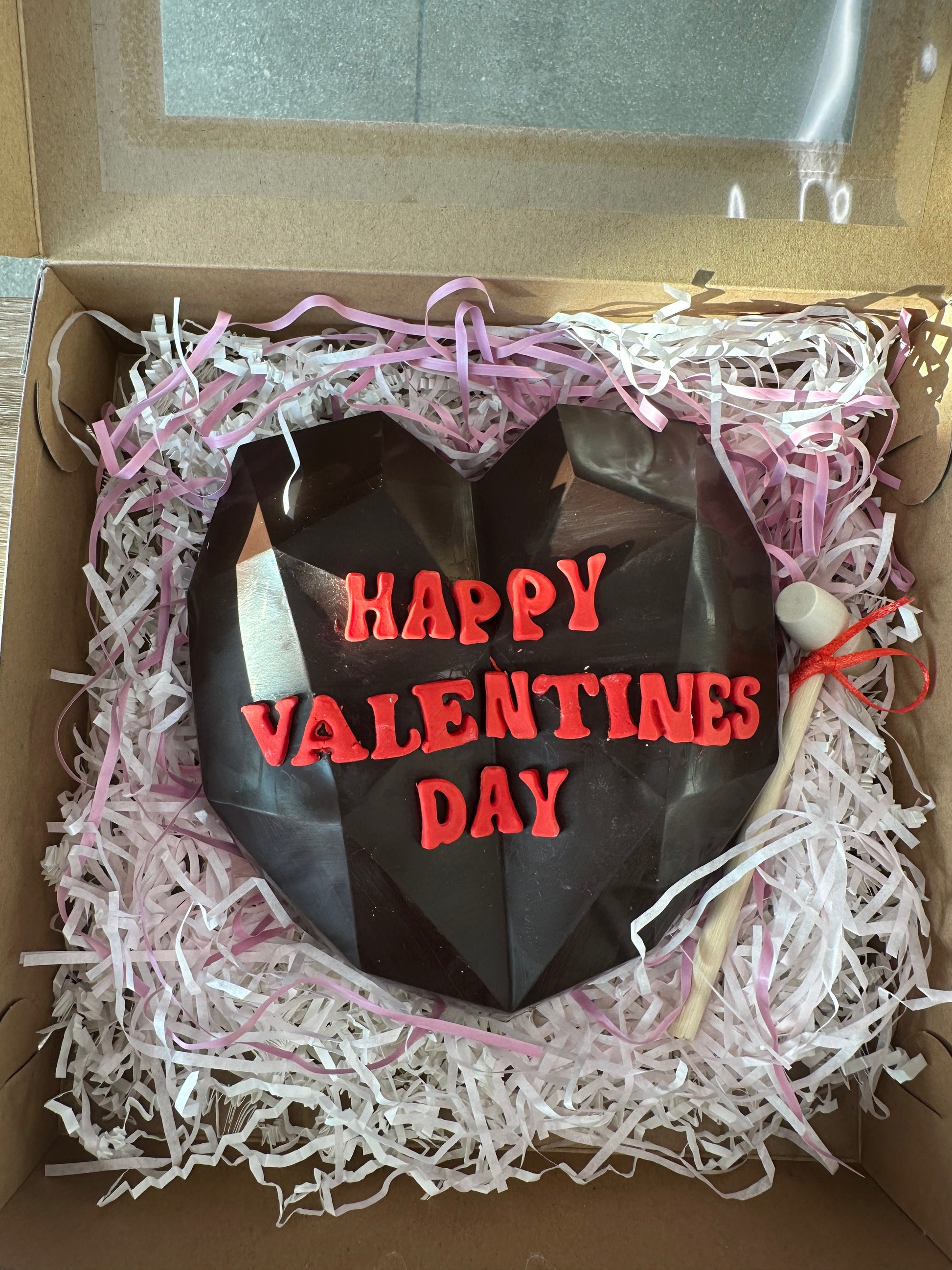 Each heart is filled with an assortment of candies. It comes with a small wooden mallet, inviting your loved one to break open the heart to reveal the sweet surprise inside.